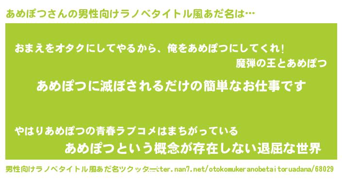 | ヒーロー風カッコイイあだ名 | 『慈愛の使者あめぽつ』『ネオアメポツ』 |