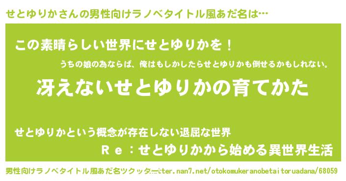 | 意味不明あだ名 | 『住所不定無職せとゆりか(98歳)』 |