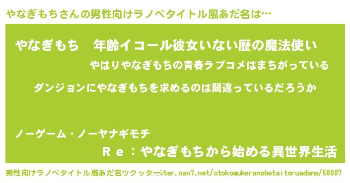 | 女子向けラノベタイトル風あだ名 | 『やなぎもちの卵を拾いまして』 |