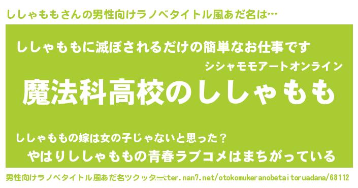 | 女子向けラノベタイトル風あだ名 | 『ししゃももアンティーク』 |
