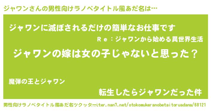 | 胡散臭い通販商品みたいなあだ名 | 『伝統あるサプリメント…その名も「ジャワン」』 |
