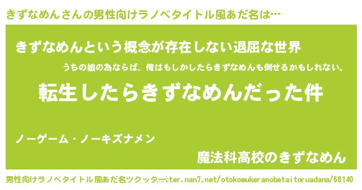 きずなめんさんの男性向けラノベタイトル風あだ名をツクッター!
