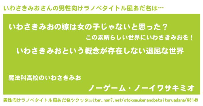 | 女子向けラノベタイトル風あだ名 | 『異世界で失敗しない100のいわさきみお』 |