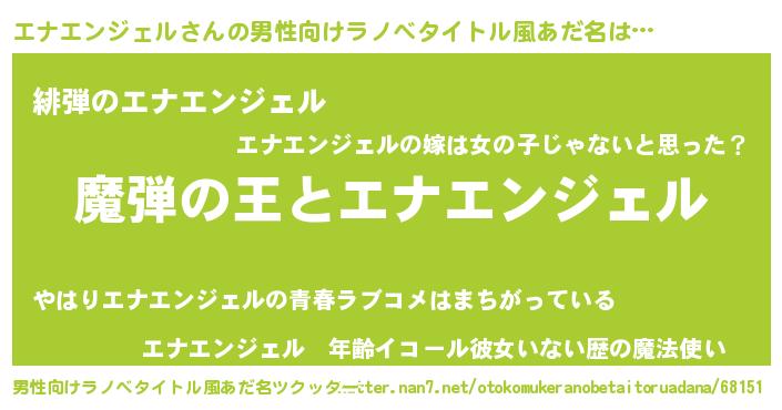 | 女子向けラノベタイトル風あだ名 | 『乙女ゲームの破滅フラグしかない悪役エナエンジェルに転生してしまった…』 |