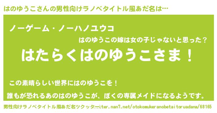 はのゆうこさんの男性向けラノベタイトル風あだ名をツクッター!