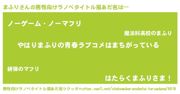 | 女子向けラノベタイトル風あだ名 | 『まふり伯爵の花嫁』『まふり恋絵巻』 |