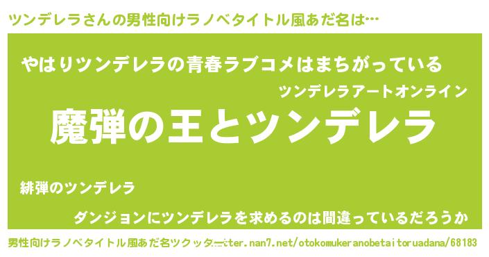 | 女子向けラノベタイトル風あだ名 | 『乙女ゲームの破滅フラグしかない悪役ツンデレラに転生してしまった…』 |