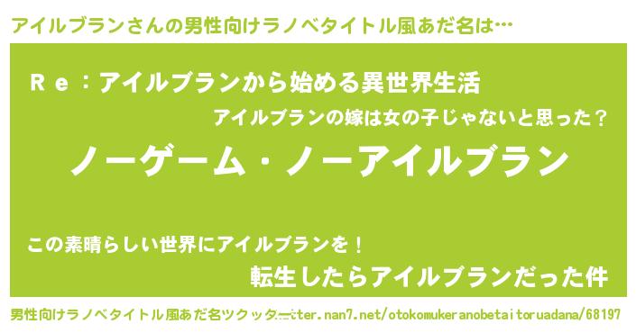 | 女子向けラノベタイトル風あだ名 | 『死神アイルブランの再婚』 |