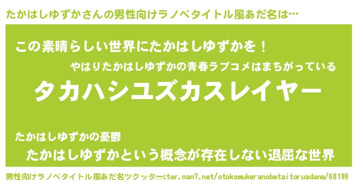 | ヒーロー風カッコイイあだ名 | 『仮面タカダー』『ネオタカハシユズカ』 |