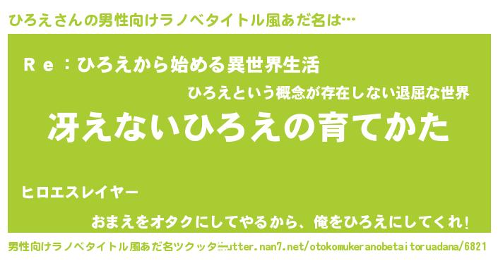 | ヒーロー風カッコイイあだ名 | 『サイバー戦士ヒロエ』『愛の使者ひろえ』 |