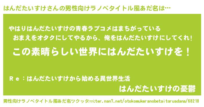 | 欧米人風あだ名 | 『ダレノガレはんだたいすけ』 |