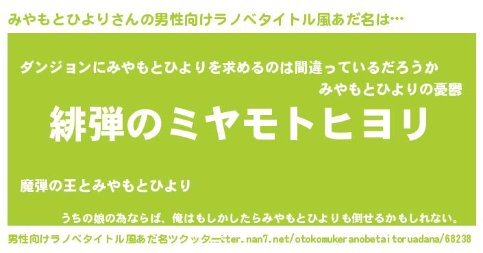 | 女子向けラノベタイトル風あだ名 | 『シンデレラみやもとひより家の靴箱館』 |