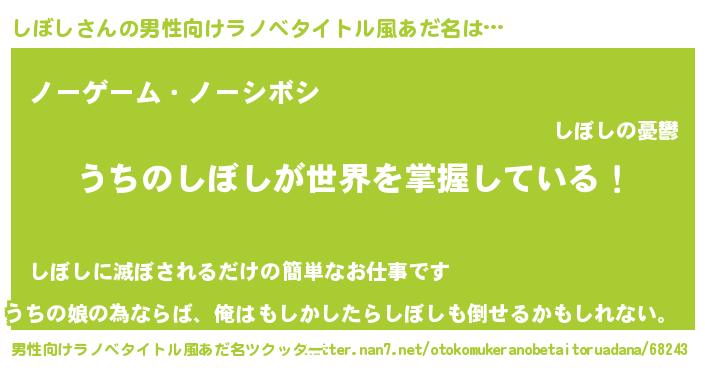| 女子向けラノベタイトル風あだ名 | 『男装しぼしの憂鬱な任務』 |