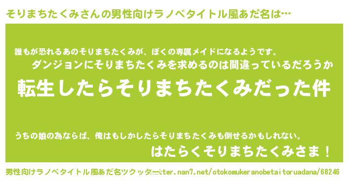 | ヘコむあだ名 | 『そりまちたくみ(苦笑)』『そりぷりん』 |