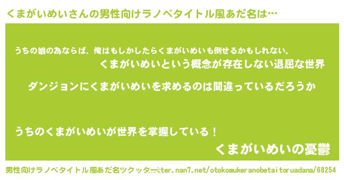 | 伝説のあだ名 | 『孤高の僧侶くまがいめい』 |