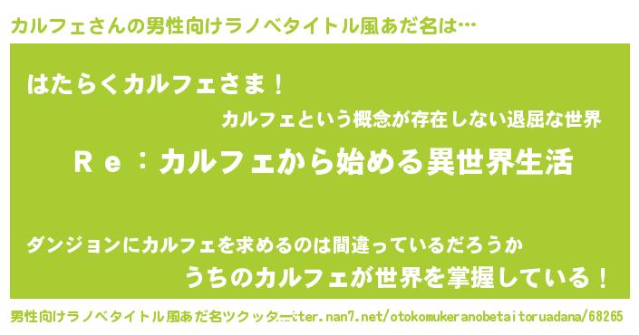 | 意味不明あだ名 | 『自称カルフェ』『永久保存カルフェ』 |