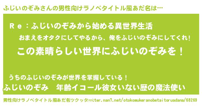 | 女子向けラノベタイトル風あだ名 | 『悪役ふじいのぞみに転生したようですが、知った事ではありません』 |