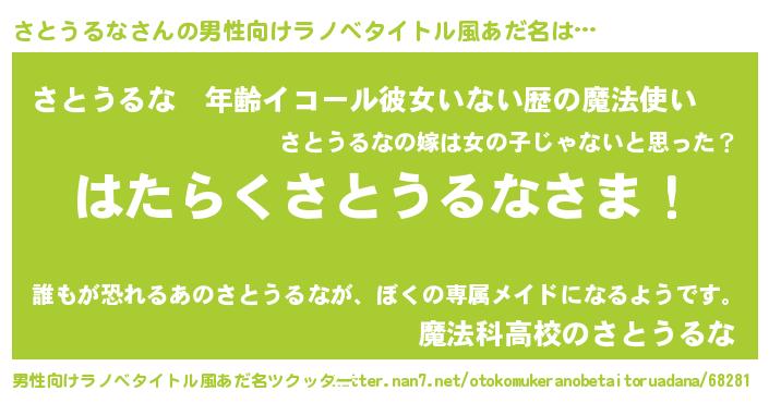 | 胡散臭い通販商品みたいなあだ名 | 『ガンによく効く高麗人参…その名も「さとうるな」』 |
