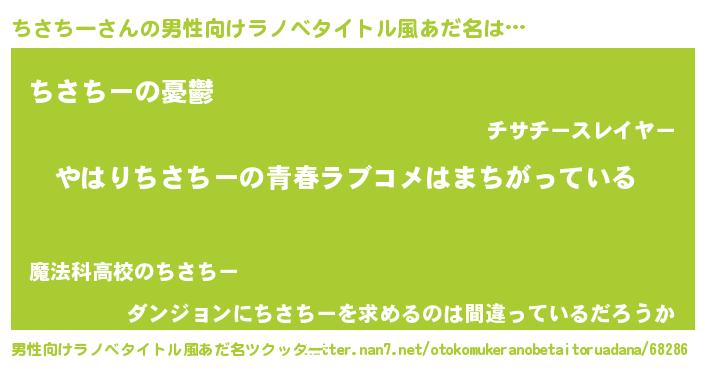 | 女子向けラノベタイトル風あだ名 | 『ちさちーの雑貨屋さん』 |