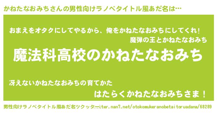 | 女子向けラノベタイトル風あだ名 | 『かねたなおみちアンティーク』 |
