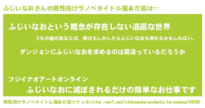 | 女子向けラノベタイトル風あだ名 | 『ふじいなおは平凡を望む』 |
