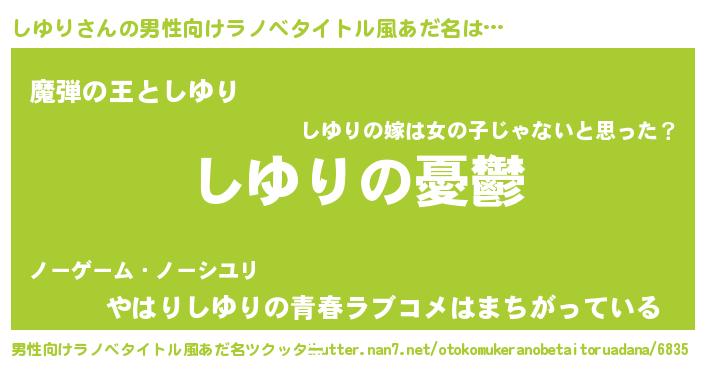 | 女子向けラノベタイトル風あだ名 | 『(仮)しゆりのやんごとなき事情』 |
