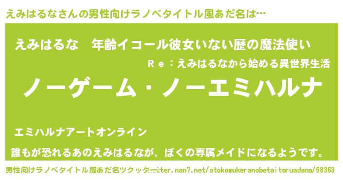 | 女子向けラノベタイトル風あだ名 | 『死神えみはるなの再婚』 |