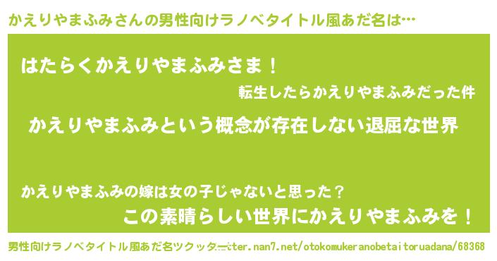 | 女子向けラノベタイトル風あだ名 | 『異世界で失敗しない100のかえりやまふみ』 |