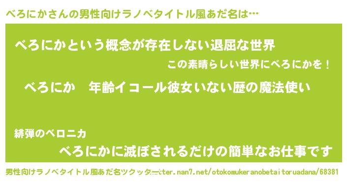 | ヘコむあだ名 | 『べろにか(小並感)』『べろにー』 |