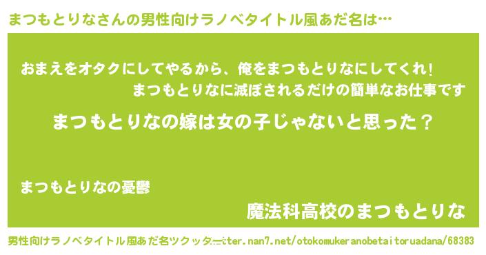 | 女子向けラノベタイトル風あだ名 | 『まつもとりなの卵を拾いまして』 |