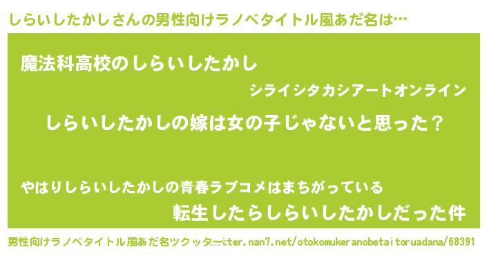 | 女子向けラノベタイトル風あだ名 | 『しらいしたかし様がみてる』 |
