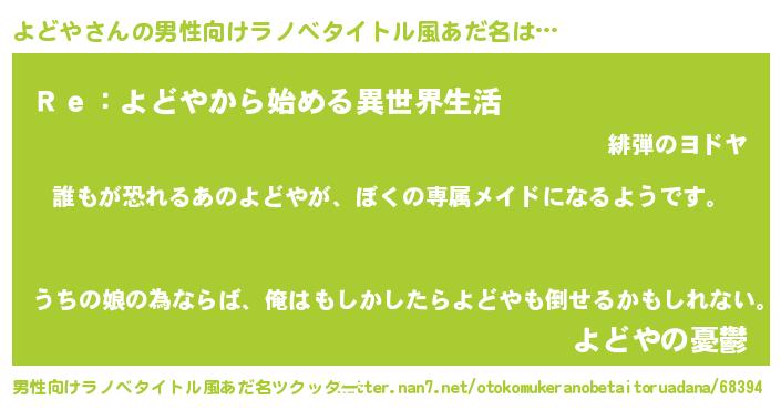 | 胡散臭い通販商品みたいなあだ名 | 『来世でも幸せになれる健康食品…その名も「よどや」』 |