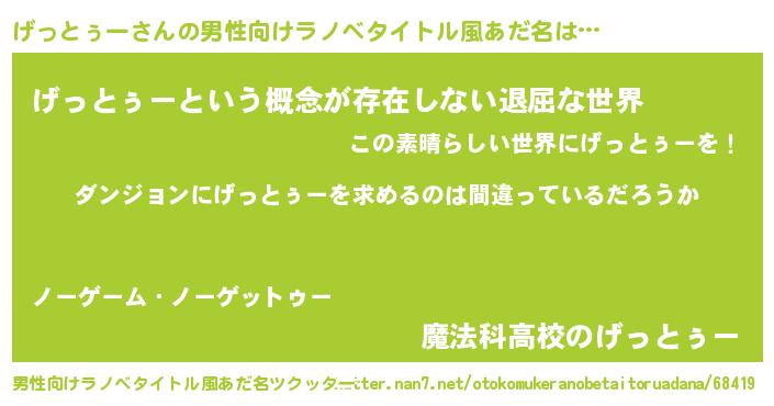 | 意味不明あだ名 | 『とにかく怪しいげっとぅー』 |