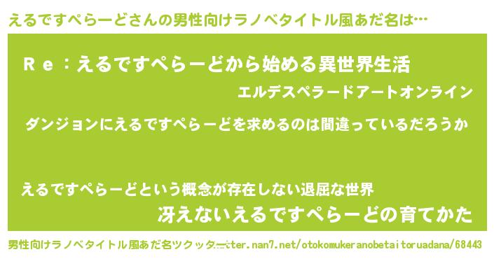 | 胡散臭い通販商品みたいなあだ名 | 『信頼と実績のネックレス…その名も「えるですぺらーど」』 |