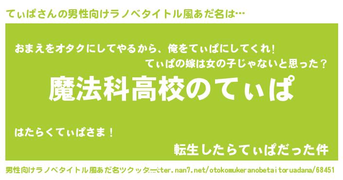 | 意味不明あだ名 | 『自称てぃぱ』『眠気覚ましガムてぃぱ味』 |