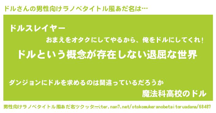 | 女子向けラノベタイトル風あだ名 | 『異世界で失敗しない100のドル』 |