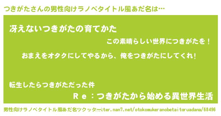 | 女子向けラノベタイトル風あだ名 | 『つきがた夫妻のなれそめ』 |