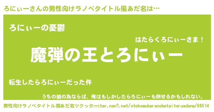 | 意味不明あだ名 | 『住所不定無職ろにぃー(43歳)』 |