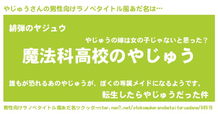 | 意味不明あだ名 | 『自称やじゅう』『めかぶ科やじゅう属』 |