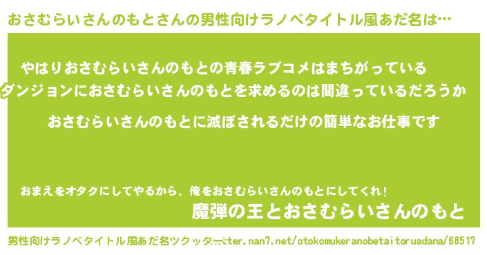 | 胡散臭い通販商品みたいなあだ名 | 『世界が平和になる高級そうな絵画…その名も「おさむらいさんのもと」』 |