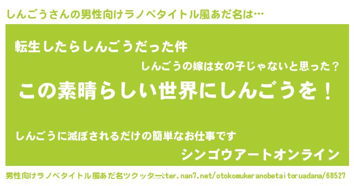 | 女子向けラノベタイトル風あだ名 | 『乙女ゲームの破滅フラグしかない悪役しんごうに転生してしまった…』 |