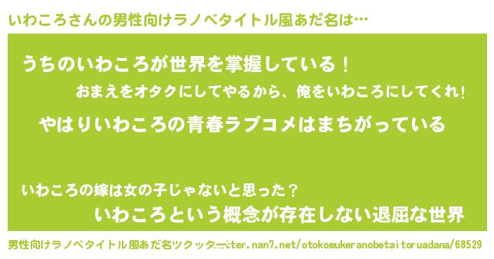 | 女子向けラノベタイトル風あだ名 | 『いわころ伯爵の花嫁』 |