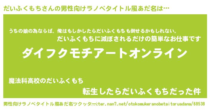 | 胡散臭い通販商品みたいなあだ名 | 『モテモテ間違いなし霊験あらたかなお札…その名も「だいふくもち」』 |