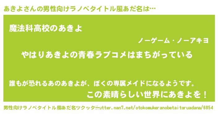 | 女子向けラノベタイトル風あだ名 | 『あきよの雑貨屋さん』 |
