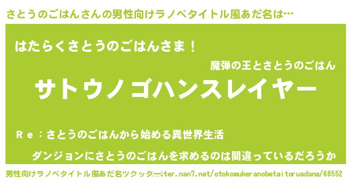 | 胡散臭い通販商品みたいなあだ名 | 『信頼と実績のサプリメント…その名も「さとうのごはん」』 |