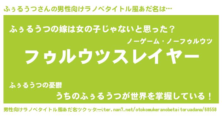 | 胡散臭い通販商品みたいなあだ名 | 『信頼と実績のサプリメント…その名も「ふぅるうつ」』 |
