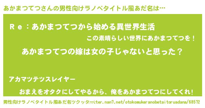 | 女子向けラノベタイトル風あだ名 | 『あかまつてつ様がみてる』 |
