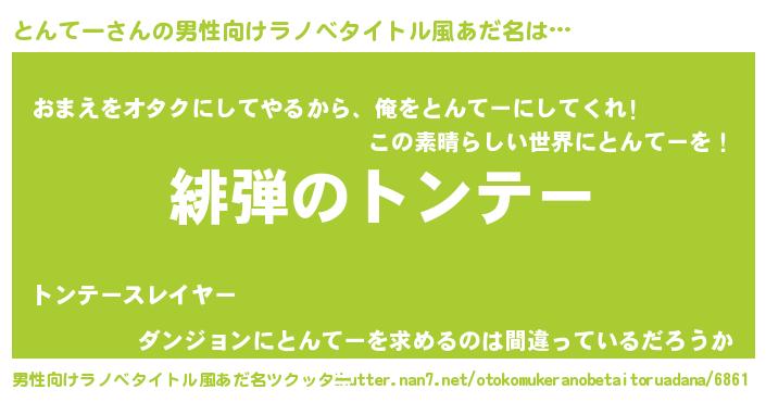 | 女子向けラノベタイトル風あだ名 | 『シンデレラとんてー家の靴箱館』 |