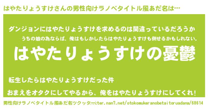 | 女子向けラノベタイトル風あだ名 | 『はやたりょうすけ姫と円卓の騎士』 |