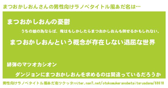 | 胡散臭い通販商品みたいなあだ名 | 『絶対に幸福をもたらす健康食品…その名も「まつおかしおん」』 |